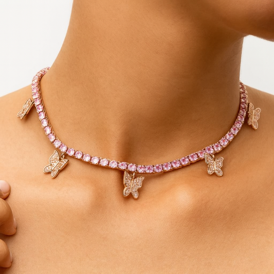 Pink Butterfly Pendant - Rose Gold